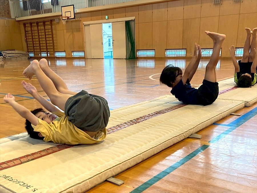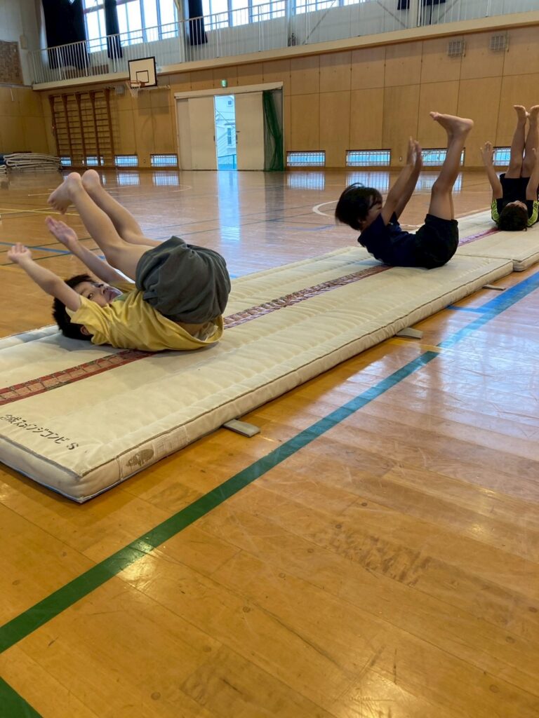 基本的なマット運動を身につけます。